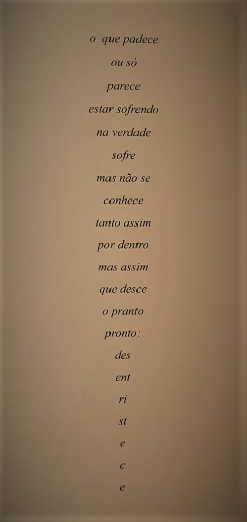 Esta poesia é, na verdade, um trecho de uma poesia maior, e nele Arnaldo Antunes fala de algo muito humano: o pranto. Todo ser humano tem necessidade de chorar. O poeta sabe disso e também sabe colocar em palavras aquilo que nós, comuns, não conseguimos.