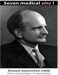 O médico britânico Richard Asher é considerado um dos principais pensadores da medicina no século XX. Dono de uma escrita refinada e de uma ironia precisa, Asher fez grandes contribuições para a medicina, como a descrição inicial da síndrome de Munchausen e da loucura mixedematosa. Além disso, ele já alertava em sua época para as doenças que os médicos poderiam causar e descreveu o interessantíssimo “paradoxo de Asher”. Porém, um de seus textos mais famosos é aquele onde ele descreve os pecados da medicina. Aqui são descritos os sete pecados originalmente descritos por Asher acrescidos de três pecados igualmente graves, mas que podem ter ficado mais evidentes atualmente.